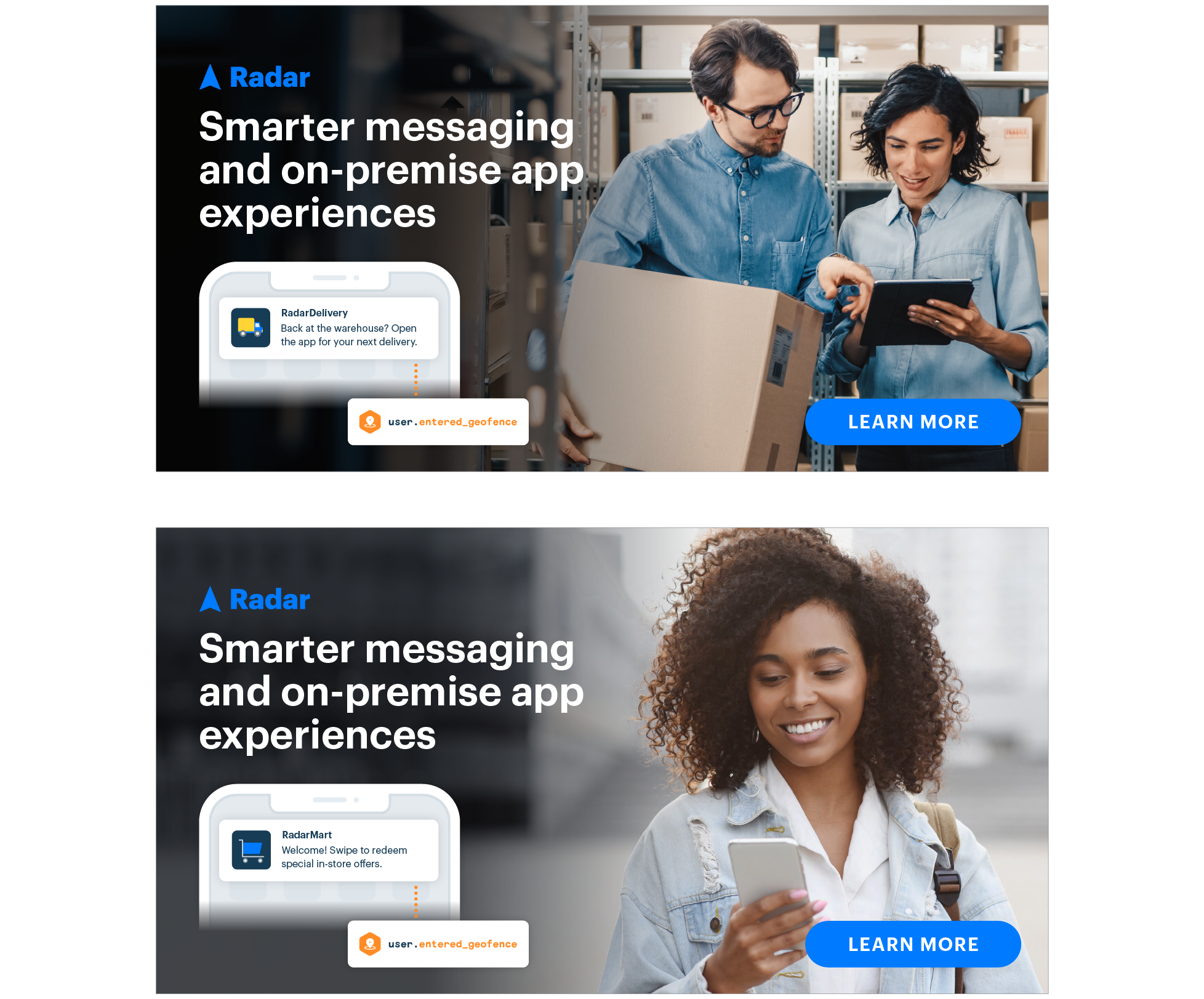 I often work across teams with demand generation, content, and product to create ads of various sizes for campaigns over my career. Below is a sampling of styles that were spun off into several size formats.